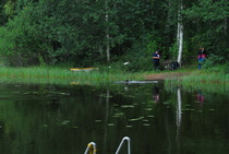 ![]() Koeväki sai seurattua vesityöskentelyosuuksia majan terassilta. |